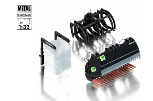 How much WIKING knows how to use the scale possibilities in 1:32 is also proved by the set B with the tools from Bressel & Lade. The big-bags made from textile material are just as imaginative as the big bag carrier. They can be easily equipped with authentic cargo. The safe transport of big bags is guaranteed by the special big bag carrier. The hydraulic front loader increase allows the big bags to be used, for example, to easily fill seed drills or load trailers.