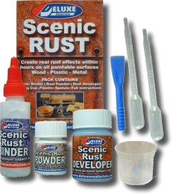 Deluxe also have a range of scenic aids, 'Solid water', for clear static water effects. 'Scenic water' for running water effects, streams, ponds etc. 'Scenic snow' for dramatic winter snow effects, containing high brightness scenic snowflakes, scenic bond adhesive and icy sparkles. 'Scenic rust' for incredibly realistic weathering effects.